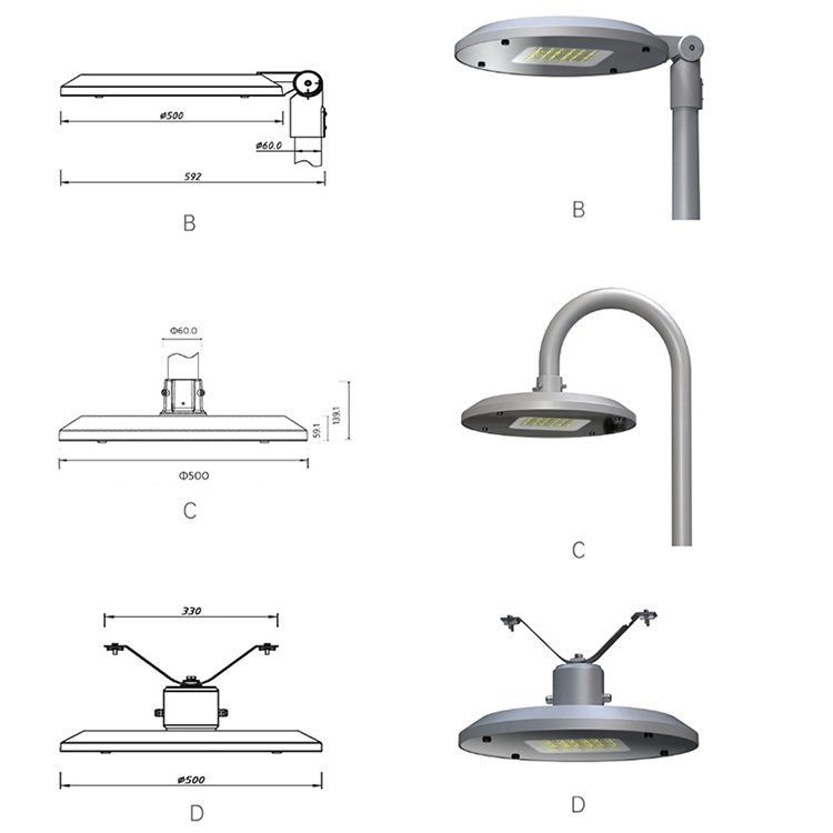 | Veličina kućišta (mm) | Φ500*500*450 | Φ500*500*168 | Φ500*500*139 | Φ500*500*286 | Aluminijsko kućište, armirano staklo, vodootporni gumeni prsten,304 s/s vijci, |