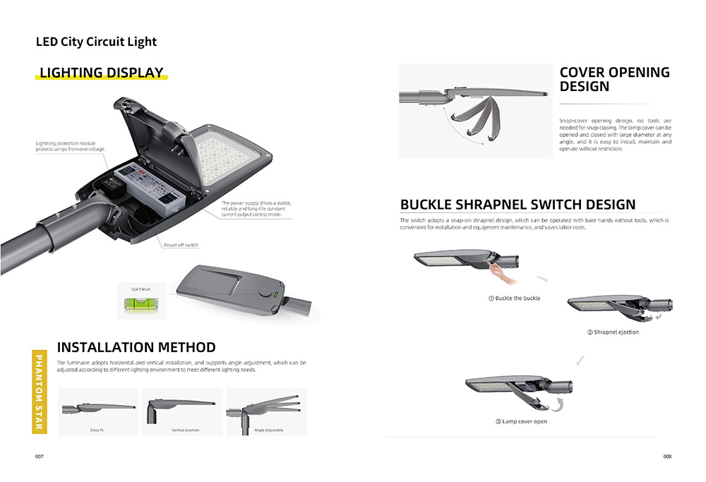 led city road light adopts a snap on shrapnel design which can be operated with bare hands without tools and is convenient for installation and equipment maintenance saves labor costs.